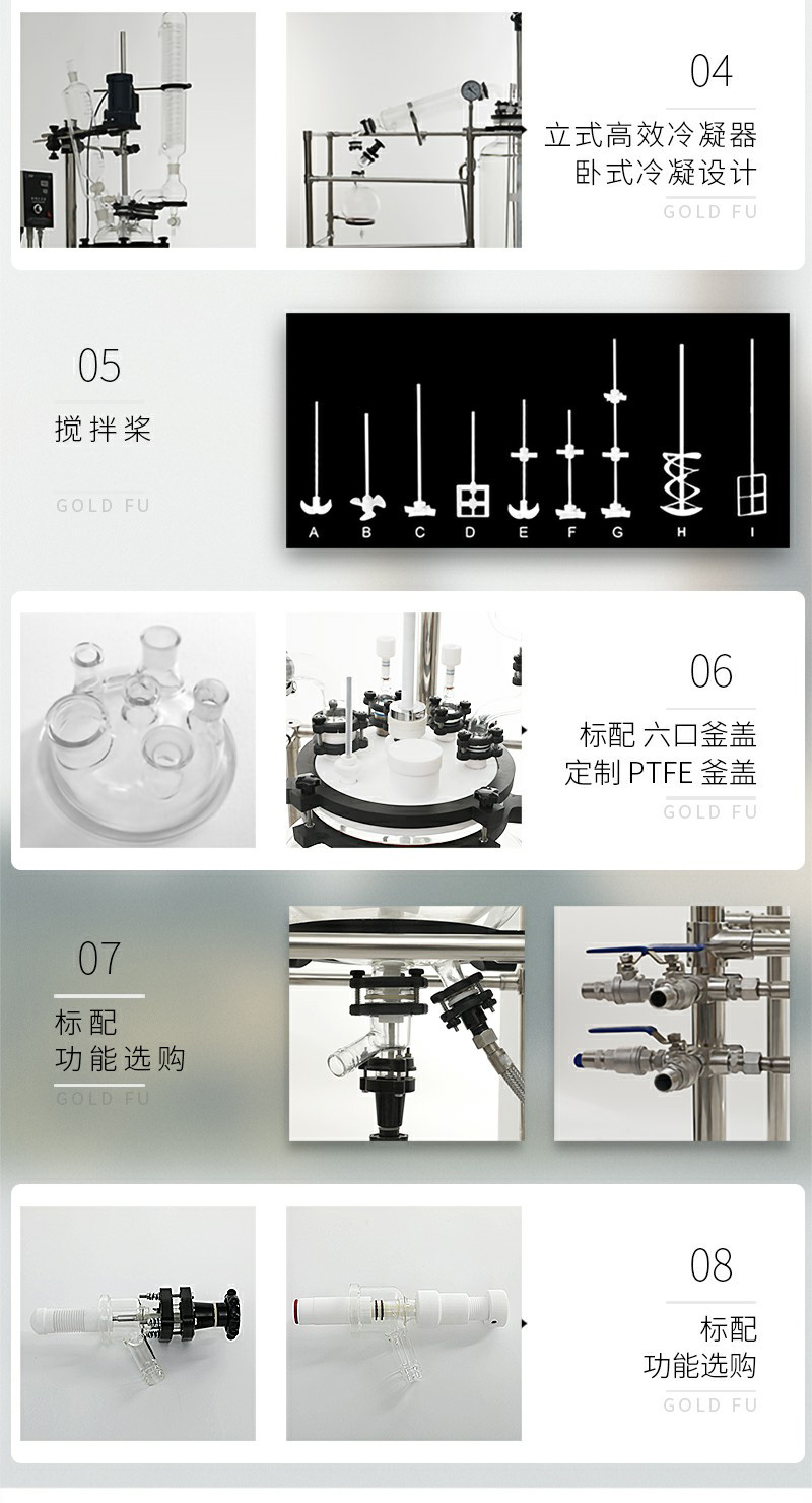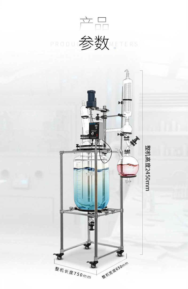 玻璃雙層反應(yīng)釜為雙層玻璃設(shè)計(jì),內(nèi)層放入反應(yīng)溶媒可做攪拌反應(yīng),夾層可通上不同的冷熱源(冷凍液,熱水或熱油)做循環(huán)加熱或冷卻反應(yīng)。在設(shè)定恒溫條件下,在密閉的玻璃反應(yīng)器內(nèi),可根據(jù)使用要求在常壓或負(fù)壓條件下進(jìn)行攪拌反應(yīng),并能做反應(yīng)溶液的回流與蒸餾,是現(xiàn)代精細(xì)化工廠、生物制藥和新材料合成的理想中試、生產(chǎn)設(shè)備。